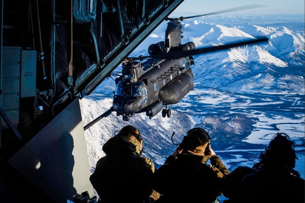 MH-47 Night Stalker της 160ης SOAR σε συνεργασία με την 109η Πτέρυγα Αερομεταφορών για την εντυπωσιακή φωτογραφία.