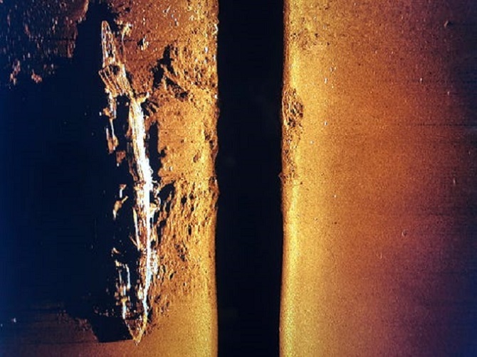 Οι εικόνες σόναρ μαρτυρούν ότι το «Κάγκα» βούλιαξε με την πλώρη και προσέκρουσε στον πυθμένα με ταχύτητα, σκορπίζοντας συντρίμμια και δημιουργώντας στο ίζημα του βυθού έναν κρατήρα που μοιάζει σαν να έγινε κάποια έκρηξη στον ωκεανό. Απόκοσμες εικόνες από την άβυσσο δείχνουν το τσακισμένο αεροπλανοφόρο να έχει μετατραπεί σε διάφορα σημεία του αποικία θαλασσίων οργανισμών ενώ κάποια από τα πλευρικά πυροβόλα του δείχνουν άθικτα.
