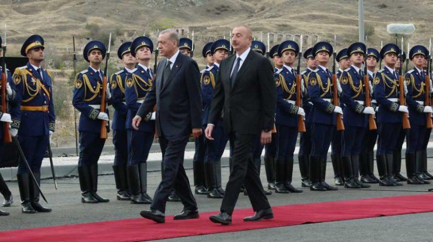 Ο Ρετζέπ Ταγίπ Ερντογάν, επισκεπτόμενος τον αζέρικο θύλακα του Ναχιτσεβάν, γιόρτασε τη «νίκη» του Αζερμπαϊτζάν στο Ναγκόρνο Καραμπάχ, μια νίκη που, σύμφωνα με τον Τούρκο πρόεδρο, ανοίγει «νέες ευκαιρίες για ομαλοποίηση» στην περιοχή.