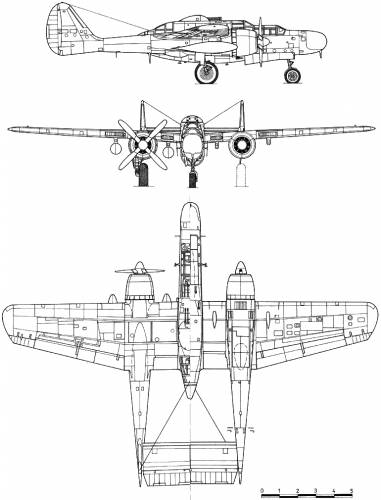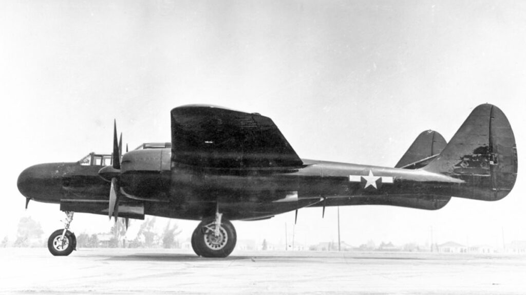 Ο αρχικός σχεδιασμός της Northrop ήταν ένα ευμεγέθες δικινητήριο αεροσκάφος τρίκυκλου συστήματος προσγειώσεως, τροφοδοτούμενο με δύο δεκαοκτακύλινδρους αστεροειδείς αερόψυκτους κινητήρες Pratt & Whitney R2800-10 των 2.000 ίππων έκαστος. Οι μετέπειτα πολλαπλές τροποποιήσεις αφορούσαν τη θέση και το είδος του οπλισμού για ακόμη ακριβέστερη στόχευση και με επιπλέον διαθέσιμο χώρο στις πτέρυγες για μεγαλύτερες δεξαμενές καυσίμων. Έτσι ο αρχικοί πυργίσκοι στο ρύγχος και την ουρά άλλαξαν και τοποθετήθηκαν επάνω και κάτω από την άτρακτο. Εν συνεχεία, ο κάτω πυργίσκος αντικαταστάθηκε από τέσσερα πυροβόλα των 20 χιλιοστών, ενώ ο επάνω έμεινε ως είχε.
