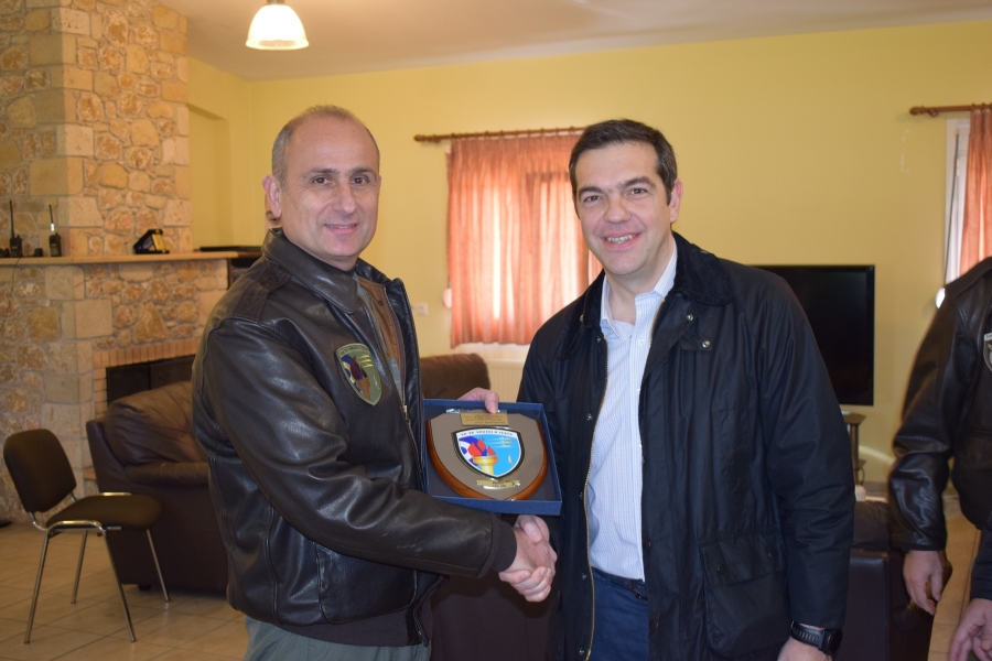 Σύμφωνα με δελτίο τύπου του Υπουργείου Εθνικής Άμυνας “Ο Πρωθυπουργός Αλέξης Τσίπρας, συνοδευόμενος από τον Υπουργό Εθνικής Άμυνας Πάνο Καμμένο, επισκέφθηκε την 135 Σμηναρχία Μάχης στη Σκύρο. Ο Πρωθυπουργός συνομίλησε για αρκετή ώρα με τα πληρώματα και τους τεχνικούς των αεροσκαφών επιφυλακής (Readiness), καθώς και με το υπόλοιπο προσωπικό της μονάδας, που βρίσκονται σε διαρκή επιφυλακή για την προστασία των κυριαρχικών μας δικαιωμάτων, ανταλλάσσοντας μαζί τους απόψεις για το έργο τους. Διαπίστωσε την ετοιμότητά τους, τους συνεχάρη και τους ευχήθηκε καλή δύναμη στην αποστολή τους.