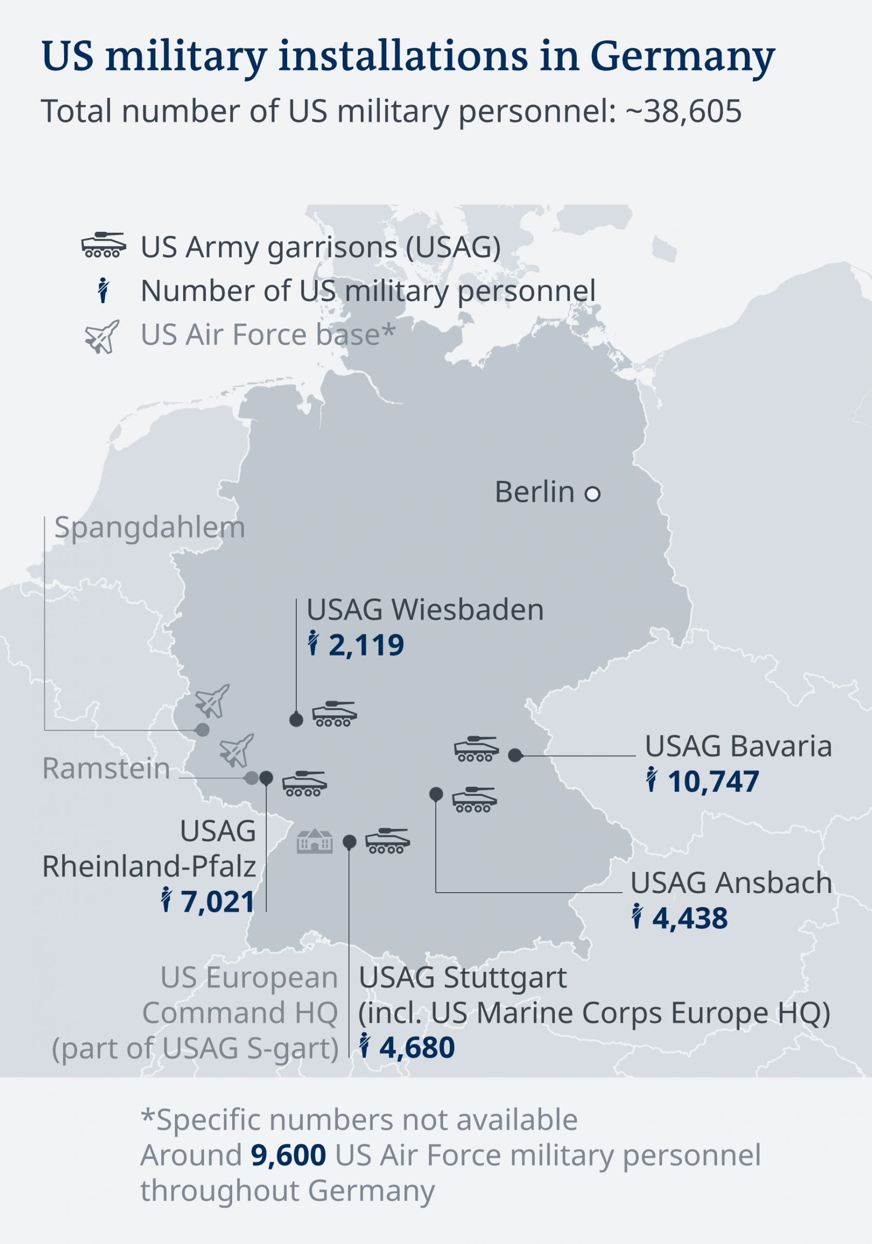 Αν και δεν δόθηκαν λεπτομέρειες κίνησης των μονάδων που θα αποχωρήσουν, το ενδεχόμενο μείωσης των περίπου 34.500 Αμερικανών που σταθμεύουν σήμερα στην Γερμανία έχει προκαλέσει ρίγη στο ΝΑΤΟ και πρώτα απ’ όλους στο Βερολίνο. Υπενθυμίζεται ότι τον Ιούνιο ο Αμερικανός Πρόεδρος είχε εξαπολύσει μύδρους κατά της Γερμανίας χαρακτηρίζοντάς της «αμελή» στις οικονομικές της υποχρεώσεις απέναντι στην Συμμαχία όπως και για το γεγονός ότι αγοράσει ενέργεια από την Ρωσία.