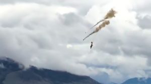 Στο βίντεο φαίνεται ο πιλότος (ένα άτομο πλήρωμα στην συγκεκριμένη πτήση χρησιμοποίησε το εκτινασσόμενο κάθισμά του, αν και μέχρι αυτή τη στιγμή δεν είναι γνωστή η τύχη του.