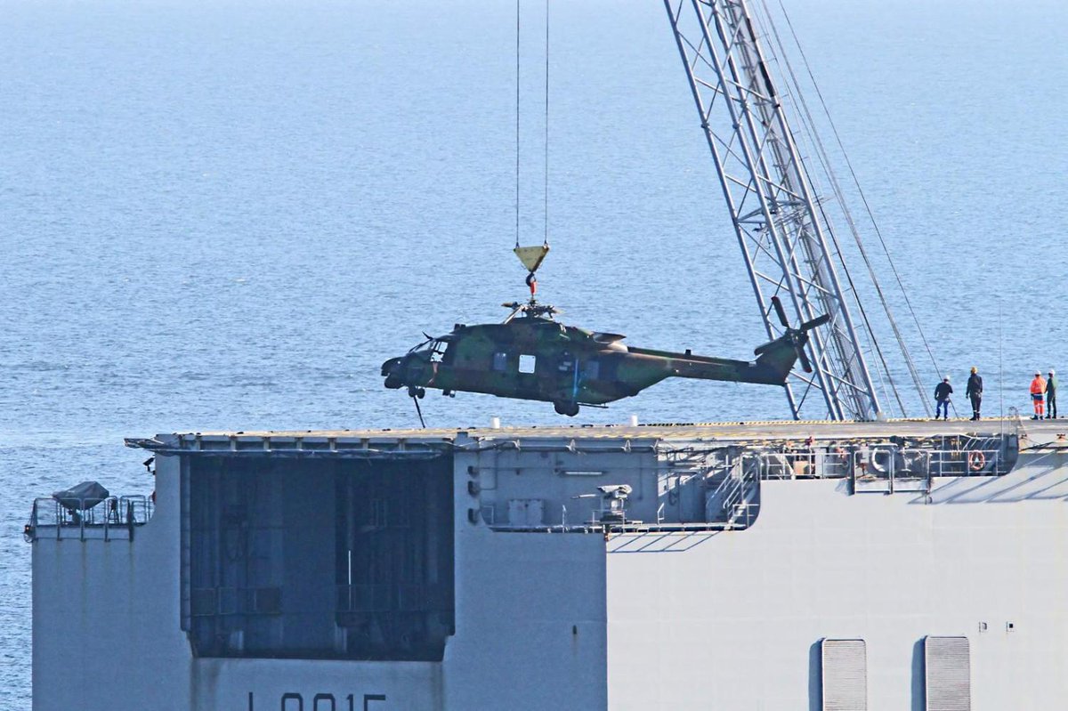 To μεταφορικό ελικόπτερο NH90 που τραυμάτισε τέσσερις ναύτες του ελικοπτεροφόρου Dixmude πέφτοντας στο κατάστρωμα του πλοίου την προηγούμενη εβδομάδα, απομακρύνθηκε από το πλοίο. Αρμόδια επιτροπή διευρενά τα αίτια του ατυχήματος.