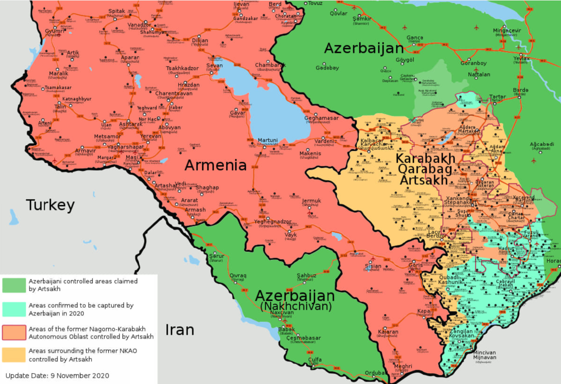 Ο Αρμένιος πρωθυπουργός Pashinyan δήλωσε πως ο πόλεμος τέλειωσε κατόπιν διαπραγμάτευσης με το Αζερμπαϊτζάν και τη Ρωσία. Περισσότερο όμως η σύγκρουση πάγωσε για κάποιο διάστημα, παρά ήρθε η ειρήνη και μια μόνιμη λύση.