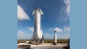Απεικόνιση της διαδικασίας εκτόξευσης του διαστημοπλοίου Starship της SpaceX με πυραυλικό φορέα Super Heavy.
