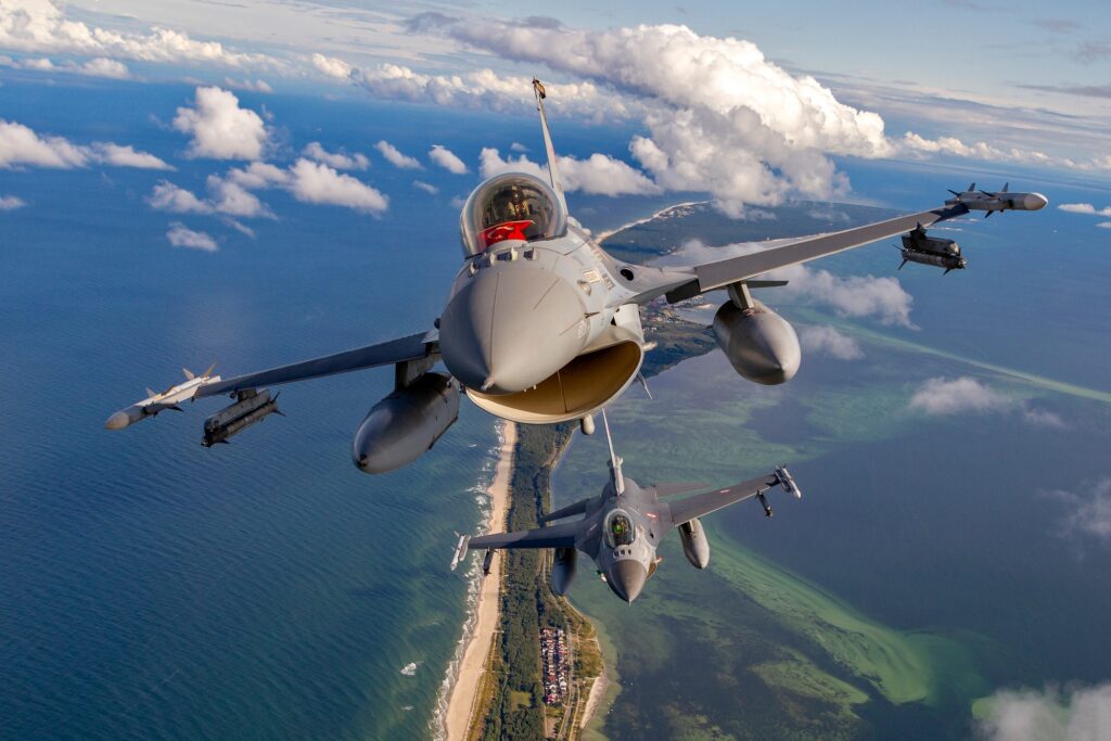 Τουρκικά Fighting Falcon σε περιπολία πάνω από την, εντυπωσιακής φυσικής ομορφιάς, χερσόνησο Hel στην Πολωνία, στη διάρκεια μεταστάθμευσης για eAP.