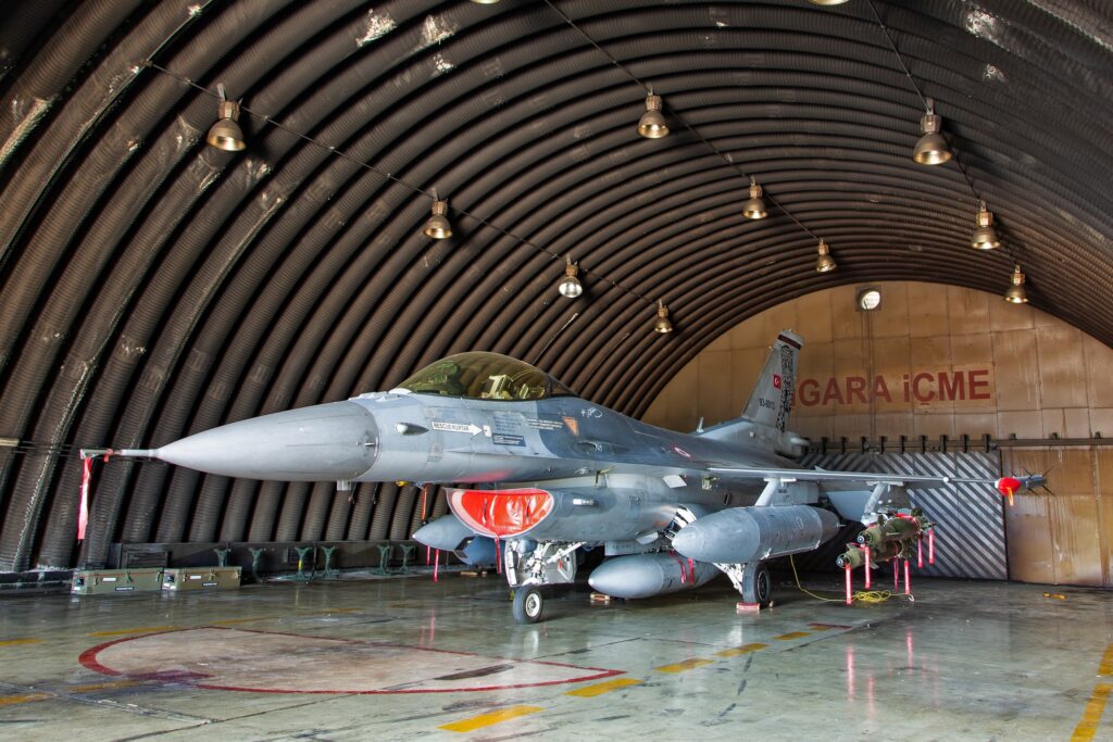 Ελαφρό υπόστεγο στη Βάση του Ικονίου, που εδώ στεγάζει ένα F-16 της 191ης Μοίρας Cobra για την Anatolian Eagle.