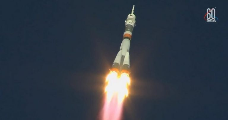 Ο αστροναύτης Nick Hague της NASA και ο κοσμοναύτης Alexey Ovchinin της Roscosmos εκτοξεύτηκαν από το κοσμοδρόμιο του Μπαϊκονούρ στο Καζακστάν.