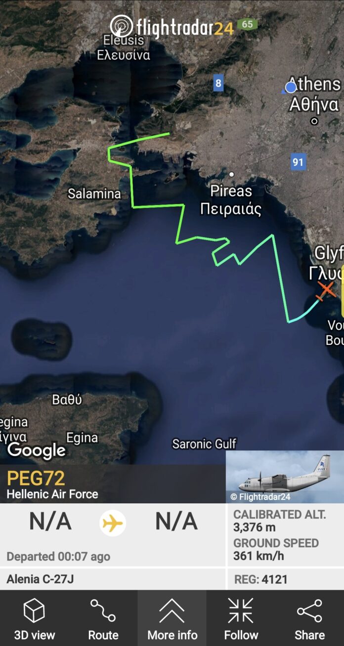 Κρίνοντας από το χθεσινό pattern του Ελληνικού Spartan, ή δεν είναι τελείως αξιόπιστη η εφαρμογή (για το κομμάτι τουλάχιστον που βλέπουμε) ή όσοι ήταν μέσα στο αεροσκάφος έχουν να διηγηθούν μια πολύ περίεργη ιστορία. Τα συμπεράσματα δικά σας.