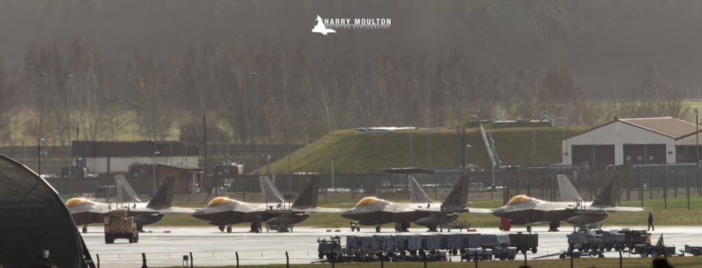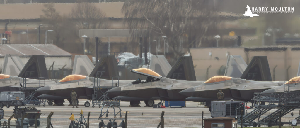 Δώδεκα Martin F-22A Raptor από την αεροπορική βάση Langley («FF», παραταγμένα χθες στην RAF Lakenheath.