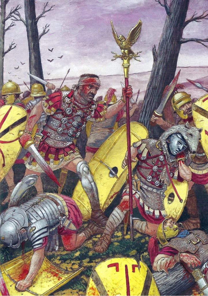 Τρείς ρωμαϊκές λεγεώνες και τα βοηθητικά τους σώματα, περί τους 36.000 άνδρες συνολικά, κυκλώνονται και εξολοθρεύονται σχεδόν στο σύνολό τους, σε ενέδρα συμμαχίας γερμανικών φυλών βαθειά στο πυκνό του Τευτοβούργιου δρυμού (saltus Teutoburgiensis). Ήταν η πιο επώδυνη ήττα του ρωμαϊκού στρατού.