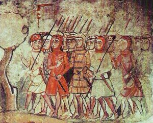 Η Μεγάλη Καταλανική Εταιρεία ήταν μια οργάνωση μισθοφόρων πολεμιστών, που προσέφεραν τις υπηρεσίες τους έναντι αδράς αμοιβής. Γνωστοί και ως Αλμογάβαροι, προερχόμενοι αρχικά από την ισπανική Αραγωνία και την Καταλωνία, οι άνδρες αυτοί ήταν τέκνα του καιρού τους. Οι συχνές και βίαιες επιδρομές των Αράβων από το Μαρόκο και την Μπαρμπαριά στις ακτές της Ιβηρικής που προχωρούσαν όλο και περισσότερο στο εσωτερικό, άφησαν πολλούς μικρούς γεωργούς και κτηνοτρόφους άκληρους και άπορους. Οπλισμένοι με μίσος, αφοσιώθηκαν στον πόλεμο, οργανώθηκαν σε ομάδες και με τη σειρά τους επέδραμαν εναντίον των Αράβων.