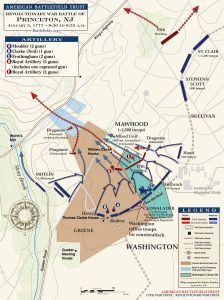 Αυτή τη φορά, στόχος ήταν μια βρετανική φρουρά 1.400 ανδρών στο Νιου Τζέρσυ. Περνώντας πάλι τον Ντέλαγουερ, ο Ουάσινγκτον με 4.500 άνδρες αυτή τη φορά, προέλασε γρήγορα προς το Princeton και αφού απώθησε μια βρετανική επίθεση το προηγούμενο απόγευμα, ελίχθηκε νύχτα γύρω από τις βρετανικές δυνάμεις για να τους αιφνιδιάσει από τα νώτα. Ο Ουάσινγκτον είχε αναθαρρήσει σημαντικά μετά τη μάχη στο Τρέντον, οκτώ μέρες πριν και επιθυμούσε να καταφέρει δύο ή τρία παρόμοια χτυπήματα δίνοντας εμπειρία στον στρατό του ενώ ταυτόχρονα άρπαζε και τα εφόδια του εχθρού που τόσο χρειαζόταν.