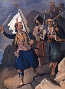 Οι πρόκριτοι της Μάνης υπό τον Πετρόμπεη Μαυρομιχάλη υψώνουν το λάβαρο της επανάστασης στην Τσίμοβα (Αρεόπολη) Λακωνίας στις 17 Μαρτίου 1821 (με το παλαίο ημερολόγιο).