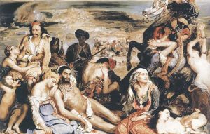 Ο καπουδάνπασας (αντιναύαρχος) Καρά Αλή αποβιβάζεται με 7.000 άνδρες στο νησί της Χίου μετά από σφοδρό βομβαρδισμό και εκθεμελιώνει την πόλη της Χίου προβαίνοντας σε τρομακτικές σφαγές του άμαχου πληθυσμού.