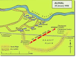 Η αυτοκρατορία των Σιχ, μιας φυλής στο Παντζάμπ της Ινδίας, με μεγάλο πολεμικό σθένος και πειθαρχία, περνούσε σοβαρή κρίση λίγα χρόνια μετά τον θάνατο του ιδρυτή της, μαχαραγιά Ρανζίτ Σιχ. Η αναταραχή εντεινόταν από το ενδιαφέρον που επεδείκνυε η Βρετανική Εταιρία Ανατολικών Ινδιών, που συγκέντρωνε στρατό στα σύνορα της.