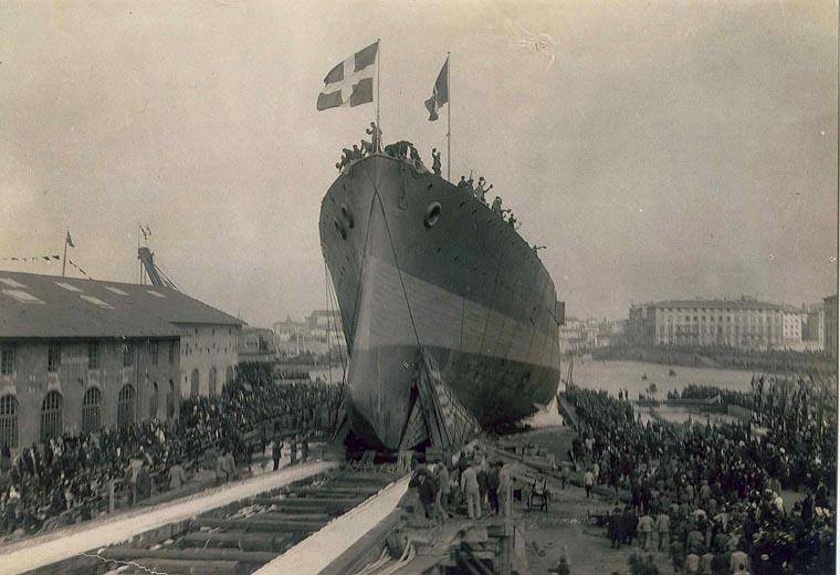 Καθελκύεται στα Ναυπηγεία Ορλάντο του Λιβόρνο της Ιταλίας το βαρύ θωρακισμένο καταδρομικό «Γεώργιος Αβέρωφ».
