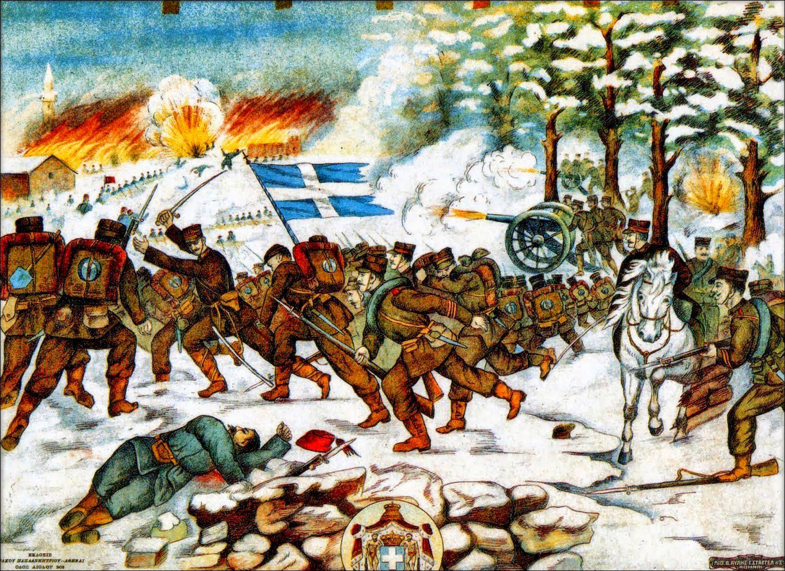 Ο Ελληνικός στρατός εισέρχεται τις πρώτες πρωϊνές ώρες στην Κορυτσά μετά την εκδίωξη των τουρκικών δυνάμεων κατά τον Α’ Βαλκανικό πόλεμο. Η κατάληψη της πόλης κρίθηκε σκόπιμη για να μην ενισχύσουν την φρουρά των Ιωαννίνων υποχωρούντα τουρκικά τμήματα από το μέτωπο με τη Σερβία. Η δύναμη των Τούρκων υπολογιζόταν σε 12.000 άνδρες περίπου.