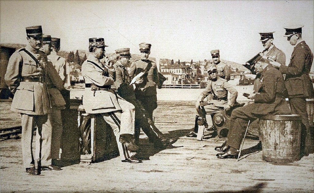 Με την ήττα του Ελληνικού στρατού στη Μικρά Ασία και την επικράτηση των Τούρκων, οι μονάδες των τριών Μεγάλων Δυνάμεων που ήταν εγκατεστημένες σε στρατηγικά σημεία ελέγχοντας τα Στενά του Βοσπόρου άρχισαν να νιώθουν την τουρκική πίεση. Για να ηρεμήσουν τα πνεύματα και να συμβιβαστούν με τη νέα κατάσταση της Τουρκίας, οι Ευρωπαίοι ξεκίνησαν τις διαπραγματεύσεις πριν την άφιξη της ελληνικής αντιπροσωπείας (στρατηγός Αλέξανδρος Μαζαράκης – Αινιάν και αντισυνταγματάρχης Πτολεμαίος Σαρηγιάννης). Το αποτέλεσμα ήταν πως, όταν πλέον οι Έλληνες αξιωματικοί της επαναστατικής κυβέρνησης έφτασαν στα Μουδανιά (παράλια πόλη στη θάλασσα του Μαρμαρά), η συμφωνία είχε επέλθει και απαιτείτο απλά η υπογραφή της.