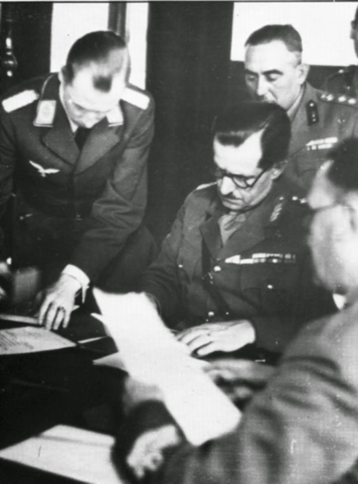 Στρατηγός Τσολάκογλου, διοικητής του Γ΄ Σώματος Στρατού, σε συνεννόηση με τους Αντιστρατήγους Παναγιώτη Δεμέστιχα (Α΄ Σώματος Στρατού) και Γεώργιο Μπάκο (Β΄ Σώματος Στρατού) και τον μητροπολίτη Ιωαννίνων Σπυρίδωνα, υπογράφει πρωτόκολλο παράδοσης των ελληνικών στρατευμάτων στις Γερμανικές αρχές, παρακάμπτοντας τόσο τον διοικητή Στρατιάς όσο και τον Αρχιστράτηγο Παπάγο.