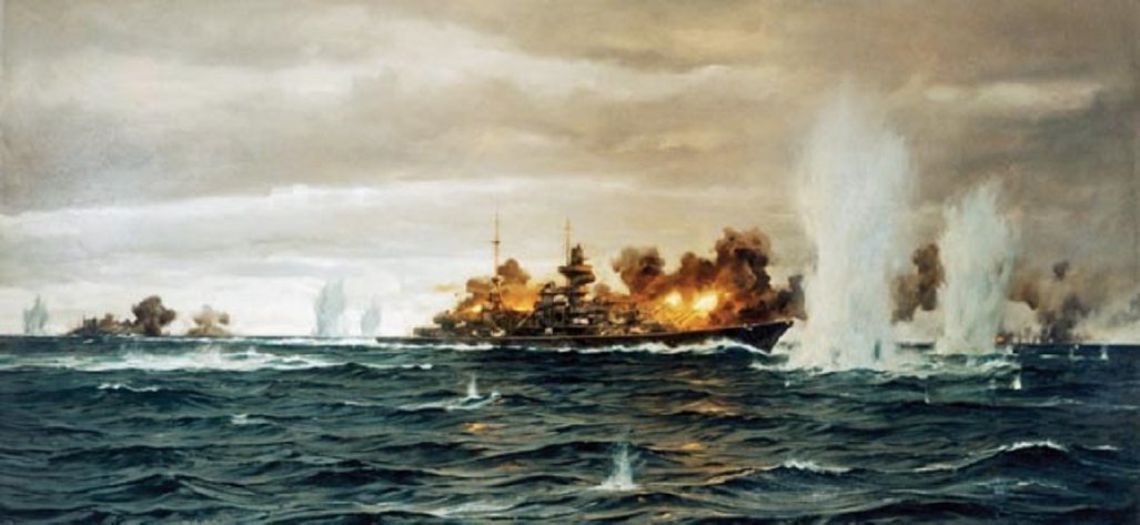 Η γερμανική ομάδα μάχης “Bismarck” (θωρηκτό Bismarck και καταδρομικό Prinz Eugen) συναντάται με τη βρετανική ομάδα “Hood” (βαρύ καταδρομικό HMS Hood και θωρηκτό HMS Prince of Wales), σε μια μεγάλη ναυτική μάχη στον Β’ Παγκόσμιο.