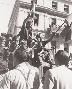 Οι γερμανικές μονάδες κατοχής εγκαταλείπουν την Αθήνα. Την ίδια στιγμή μια παλλαϊκή διαδήλωση νίκης και ευφορίας κατακλύζει τους κεντρικούς δρόμους της πόλης.