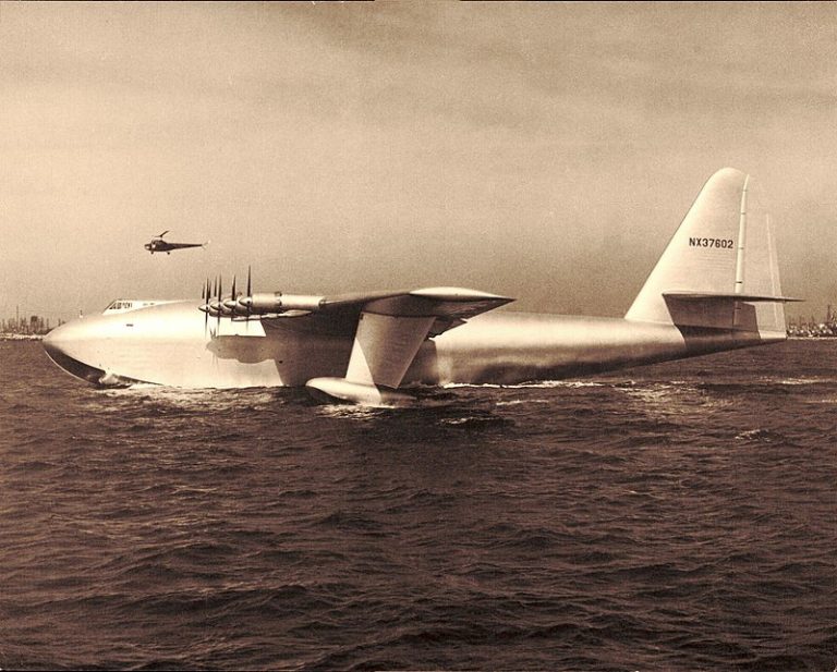 Με τον ίδιο τον Χάουαρντ Χιουζ στα χειριστήρια, αποθαλασσώνεται για πρώτη φορά το τεράστιο υδροπλάνο H-4 Hercules, γνωστότερο με το προσωνύμιο “Spruce Goose”.