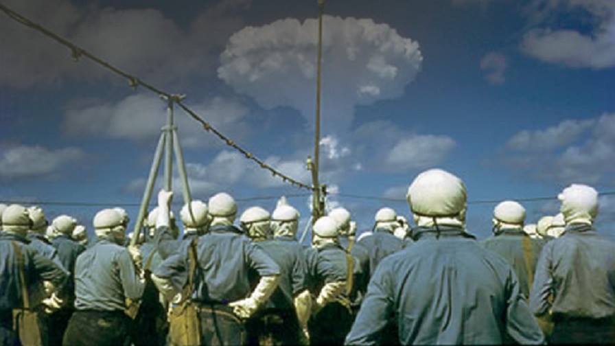 Η Βρετανία πραγματοποιεί την πρώτη της δοκιμή βόμβας υδρογόνου στο νησί Μάλντεν του Ειρηνικού. Προσωπικό των βρετανικών ενόπλων δυνάμεων παρακολουθεί την έκρηξη από τη νήσο των Χριστουγέννων.
