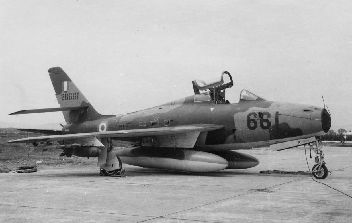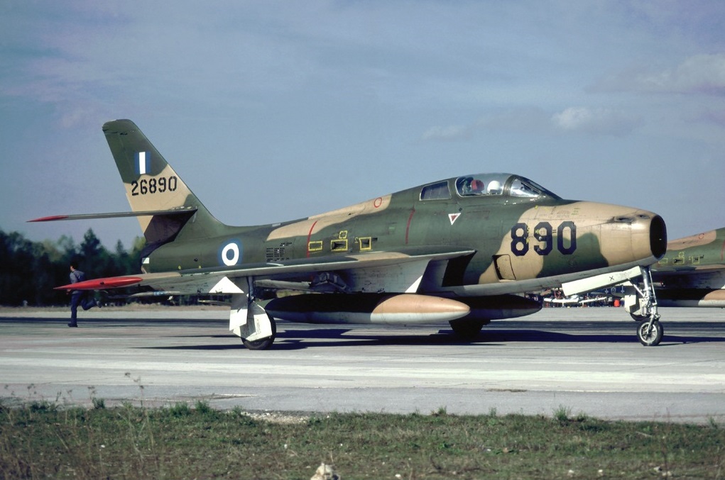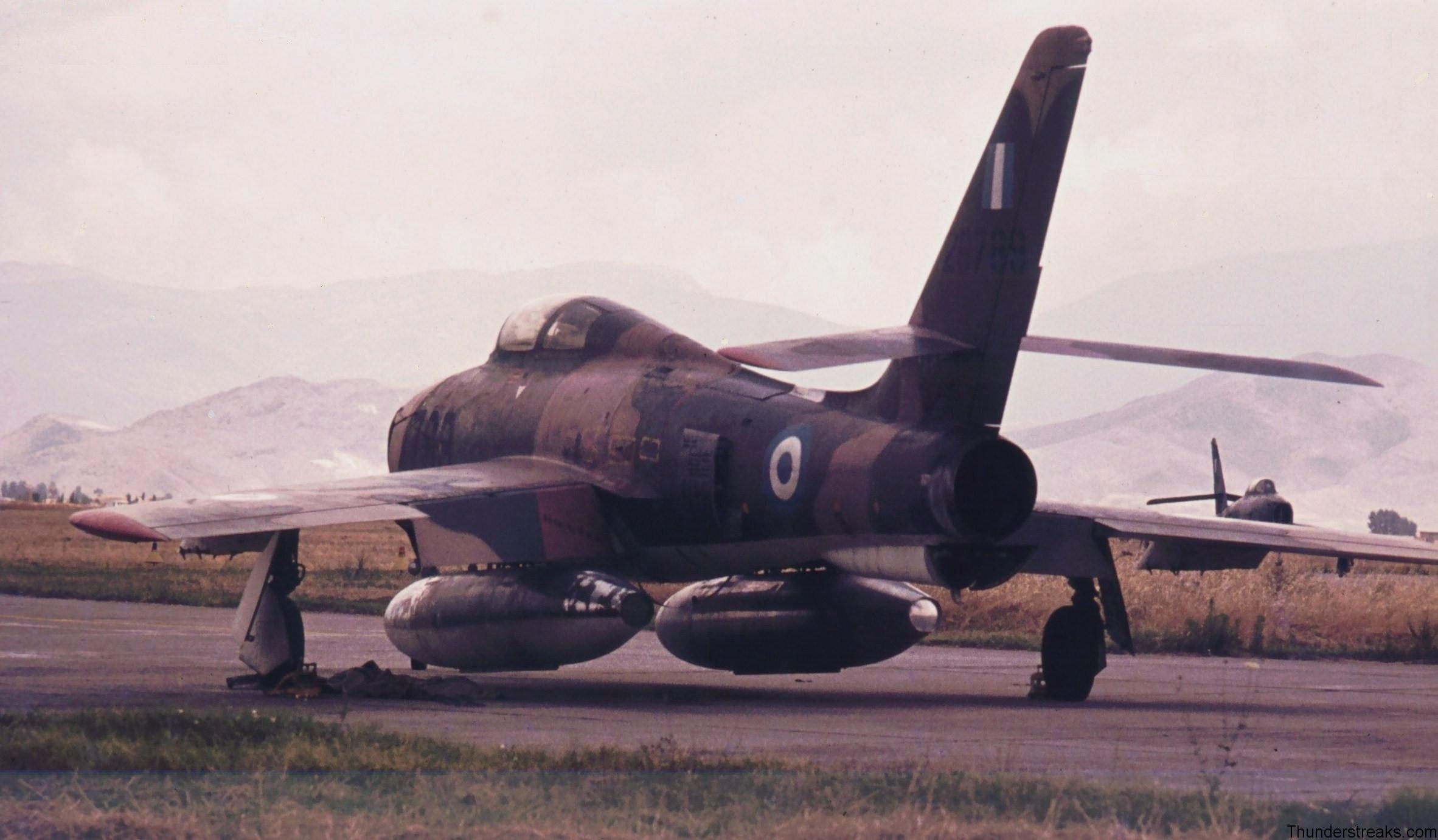 Τα τζετ του τύπου υπηρέτησαν με τα ελληνικά διακριτικά από το 1957 έως το 1983 εξοπλίζοντας συνολικά εννέα Μοίρες, τρεις από αυτές (335Μ, 336Μ, 340Μ) σε ρόλο πυρηνικής κρούσης. Τον Ιούλιο του ’74 ήταν τα αεροπλάνα που η Αεροπορία χρειαζόταν όσο λίγα και εκείνα που βρίσκονταν στο ΚΕΑ παραήταν πολύτιμα για να κάθονται στην πίστα.