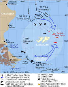 Το βρετανικό υποβρύχιο HMS Conqueror βυθίζει το Αργεντινό καταδρομικό ARA General Belgrano, στην πρώτη τορπιλική επίθεση από πυρηνικό υποβρύχιο.