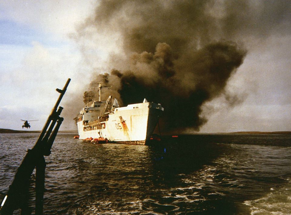 Τα πλοία εκτελούσαν αποστολή ανεφοδιασμού για τις βρετανικές δυνάμεις, που συνέχιζαν την προέλασή τους στα νησιά Φώκλαντ, έχοντας αποβιβαστεί εκεί από τις από τις 21 Μαΐου. Στις 24 Μαΐου τα πλοία δέχτηκαν την επίθεση αργεντινών A-4 Skyhawk που άφησαν μια βόμβα των 1.000 lb στο σκαρί του Sir Galahad χωρίς να εκραγεί ενώ πολυβολήθηκαν και από IAI Dagger.