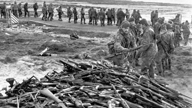 Ο Πόλεμος των Φώκλαντ λήγει με τη συμφωνία παύσης πυρός μετά την κατάληψη του Πορτ Στάνλεϋ και την υπογραφή την ίδια μέρα της -υπό όρους- παράδοσης των Αργεντινών δυνάμεων, μεταξύ του διοικητή τους Ταξιάρχου Μάριο Μενέντεζ και του βρετανού Αντιστρατήγου Τζέρεμι Μούρ.