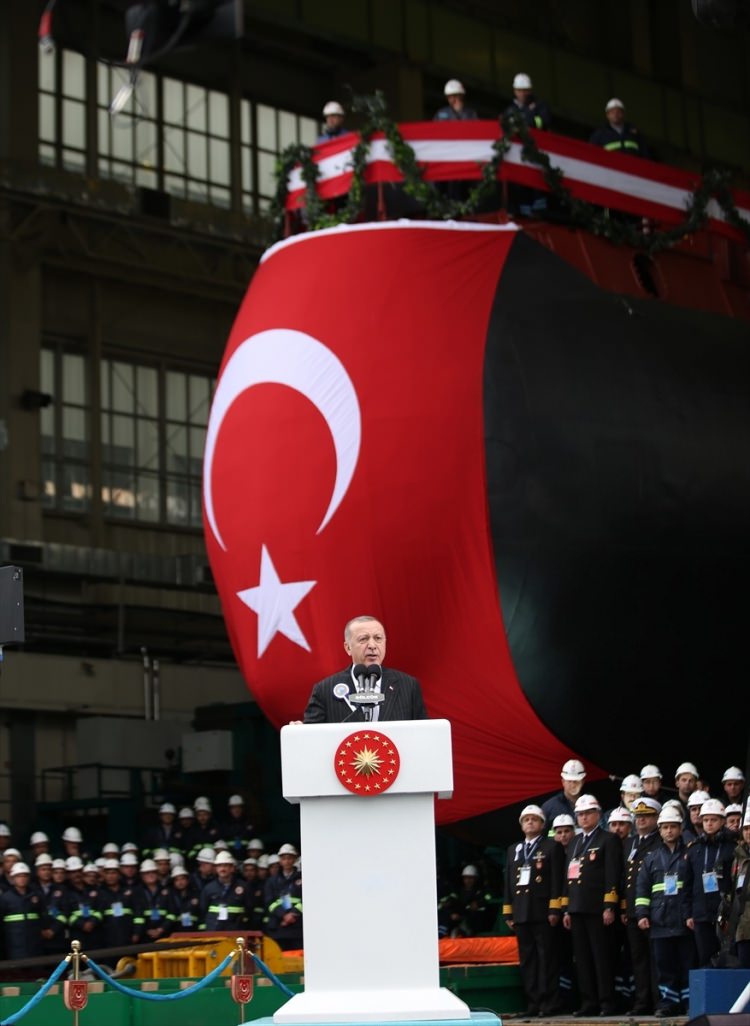 Σε μια μεγαλοπρεπή τελετή, παρουσία της ηγεσίας του τουρκικού στόλου και βιομηχανίας, ο Ταγίπ Ερντογάν χαιρέτισε την καθέλκυση του πρώτου πλοίου του προγράμματος ναυπήγησης έξι υποβρυχίων γερμανικής προέλευσης “Τύπου 214”. Η τελετή έλαβε χώρα στα ναυπηγεία Gölcük ενώ συνοδεύτηκε από την τελετουργική κοπή των πρώτων ελασμάτων για το πέμπτο υποβρύχιο.