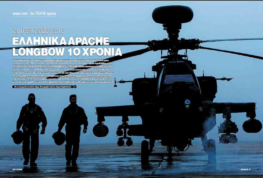 Τα AH-64A έβαλαν το 1995 στην Αεροπορία Στρατού την έννοια του μαχητή, αλλά τα AH-64DHA μέσα στη δεκαετία του 2000 εισήγαγαν το Όπλο στον κόσμο του αγώνα, σε δικτυοκεντρικό περιβάλλον και σε επιχειρήσεις με πλήρη αξιοποίηση των πληροφοριών μάχης (information dominance), προκειμένου να επιτύχει ο διοικητής οποιουδήποτε κλιμακίου την επικράτηση έναντι του εκάστοτε αντιπάλου του (information supremacy). Οι μαχητές της νύχτας του 2ου Τάγματος Επιθετικών Ελικοπτέρων γιόρτασαν τον Σεπτέμβριο τα 10 χρόνια από τη συγκρότηση της μονάδας. Το αφιέρωμά μας, αν και υπό τη σκιά του περιστατικού της 20ης Σεπτεμβρίου ευτυχώς χωρίς απώλειες ζωής ή σοβαρούς τραυματισμούς, είναι ένας ελάχιστος φόρος τιμής στους ανθρώπους που υπερβαίνουν καθημερινά την έννοια του καθήκοντος!