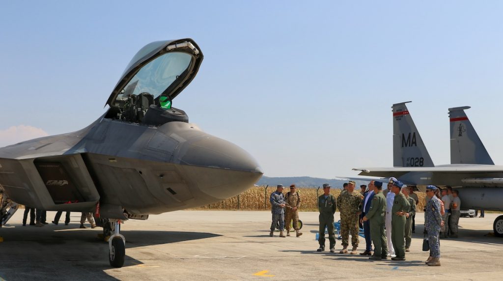 Δύο μαχητικά αεροσκάφη F-22 Raptor από την αεροπορική βάση Σπανγκνταλεμ στην Γερμανία όπου μετασταθμεύουν δώδεκα συνολικά αεροσκάφη του τύπου, μετέβησαν στην Ρουμανία.