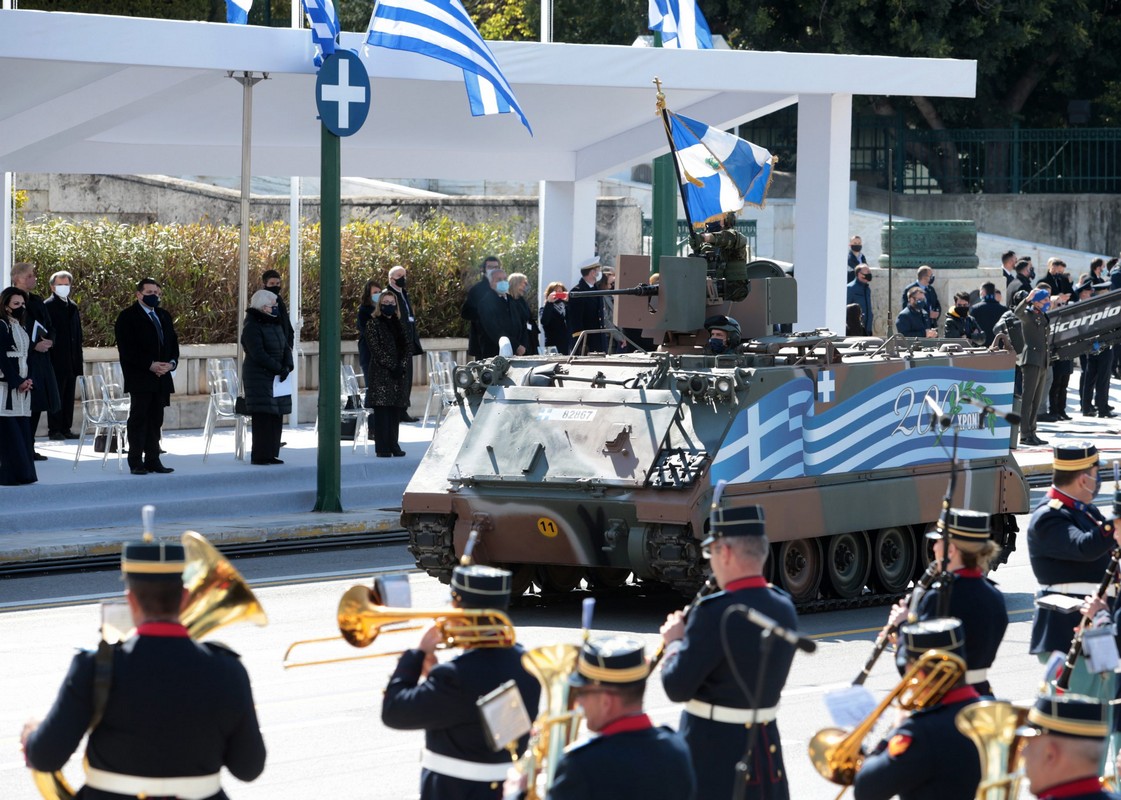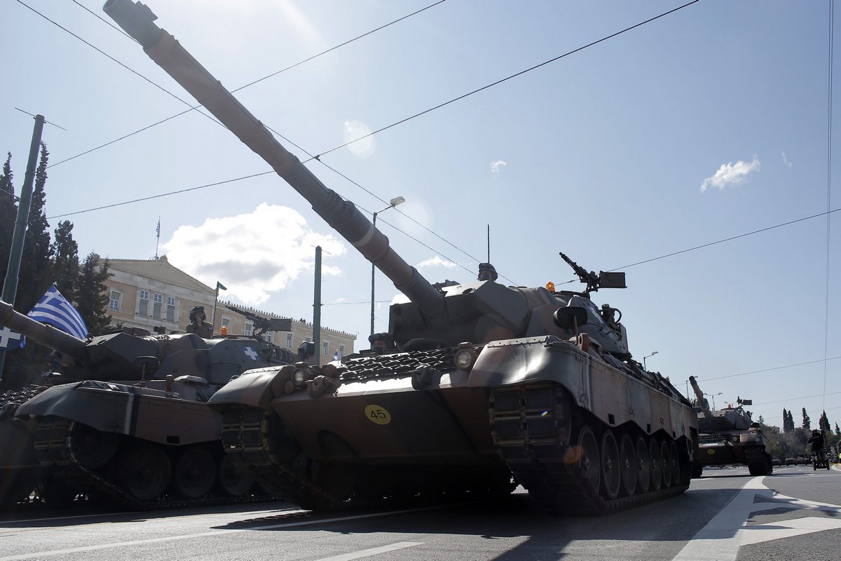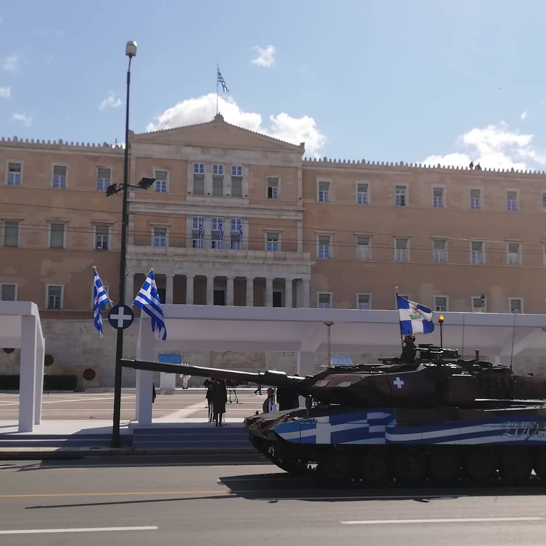 Επιβλητική ήταν μεταξύ άλλων η παρουσία των αρμάτων μάχης Λέοπαρντ (Leo -2 HEL). Τα τεθωρακισμένα συμπληρώνουν φέτος 90 χρόνια παρουσίας στον ελληνικό Στρατό-αποτελώντας την εξέλιξη του ιππικού.