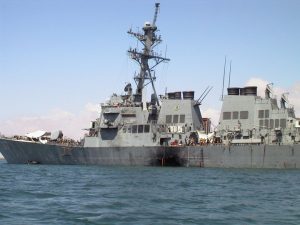 Στις 11:18 το πρωί το αμερικανικό αντιτορπιλικό Cole (DDG-67), τύπου Arleigh Burke, ενώ βρισκόταν αγκυροβολημένο στο λιμάνι του Άντεν στην Υεμένη, δέχθηκε βομβιστική επίθεση αυτοκτονίας από 2 άτομα, που επέβαιναν σε ένα μικρό σκάφος από υαλονήματα και ήταν έμφορτο 300 κιλά εκρηκτικών.