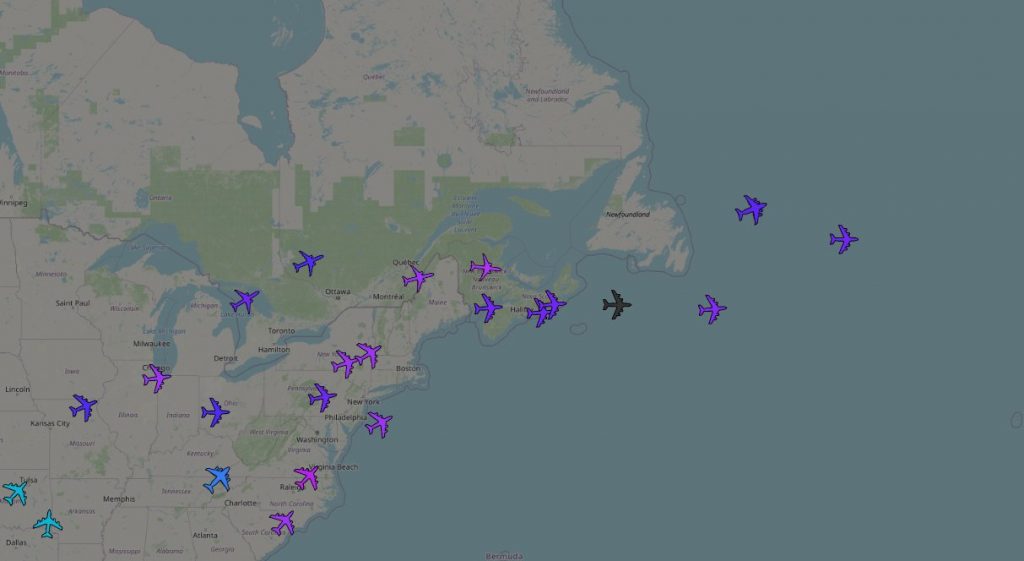 Η εικόνα που δημοσιεύουμε δείχνει τα αεροσκάφη να κινούνται από τις ανατολικές ακτές των Ηνωμένων Πολιτειών προς τον Ατλαντικό. Εικάζεται ότι η κίνηση μπορεί να συνδέεται με επικείμενες εξελίξεις στη Μέση Ανατολή, καθώς ο Τραμπ θα στήριηζε ακόμη και μια πιθανή αλλαγή καθεστώτος στο Ιράν.