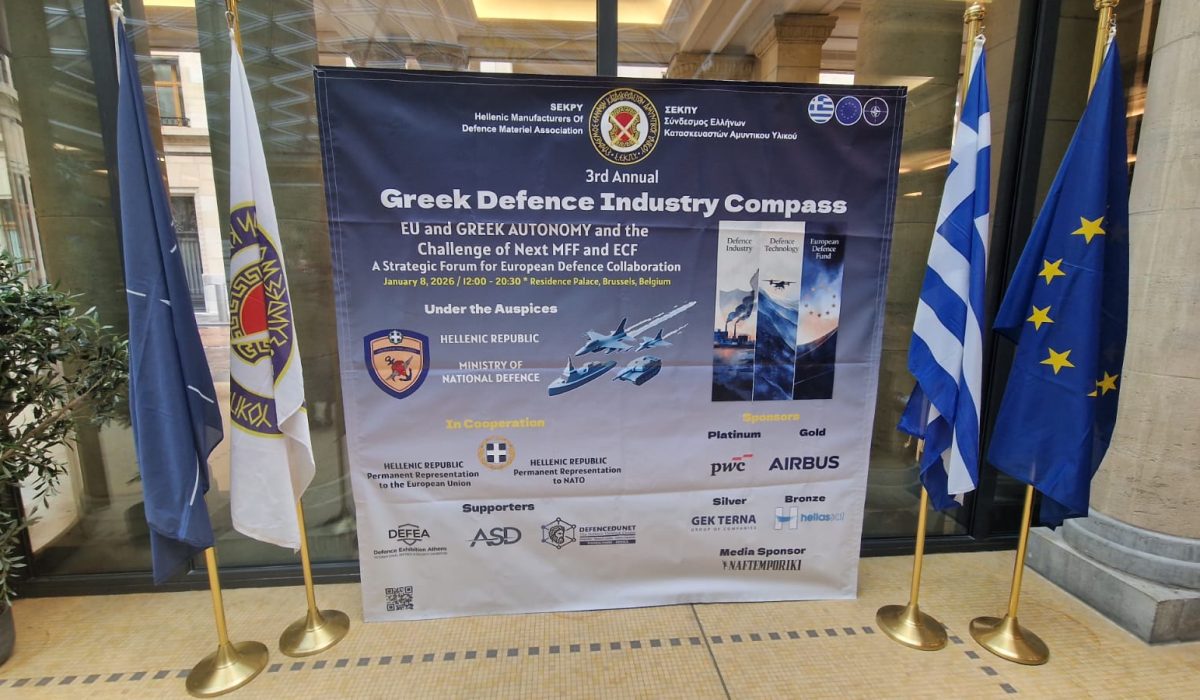 Ο Σύνδεσμος Ελλήνων Κατασκευαστών Αμυντικού Υλικού (ΣΕΚΠΥ) διοργάνωσε με μεγάλη επιτυχία το 3ο Ετήσιο Greek Defence Industry Compass στο Residence Palace στις Βρυξέλλες, στις 8 Ιανουαρίου 2026 επιβεβαιώνοντας πλέον τον θεσμικό ρόλο της εκδήλωσης ως κομβικής πλατφόρμας στρατηγικού διαλόγου, βιομηχανικής συνεργασίας και επιχειρηματικής δικτύωσης στο ευρωπαϊκό αμυντικό οικοσύστημα.