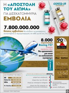 . COVID-19: «Η αποστολή του αιώνα» για δισεκατομμύρια εμβόλια αφού σύμφωνα με τα στοιχεία που αποτυπώνονται στο γράφημα, τουλάχιστον 8.000 αεροσκάφη Boeing 747 θα χρειαστούν για να μεταφερθούν τεράστιες ποσότητες από τις γραμμές παραγωγής σε διάφορες γωνιές της Γης και σε προκαθορισμένες ημερομηνίες.