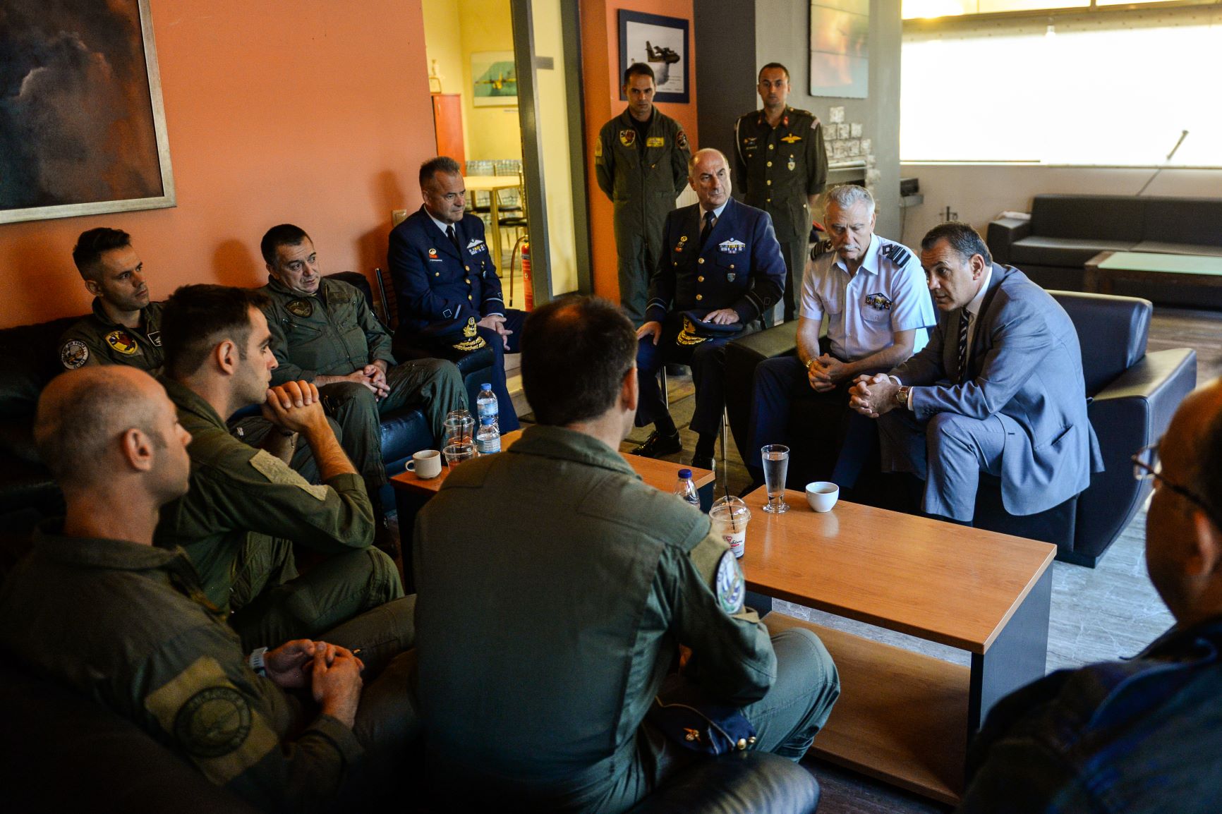 Ο Υπουργός Εθνικής Άμυνας, επισκέφθηκε την 355 Μοίρα Τακτικών Μεταφορών και συνομίλησε με τους πιλότους των πυροσβεστικών αεροσκαφών CL-415 και CL-215, οι οποίοι επιχείρησαν στις πυρκαγιές στην Εύβοια.