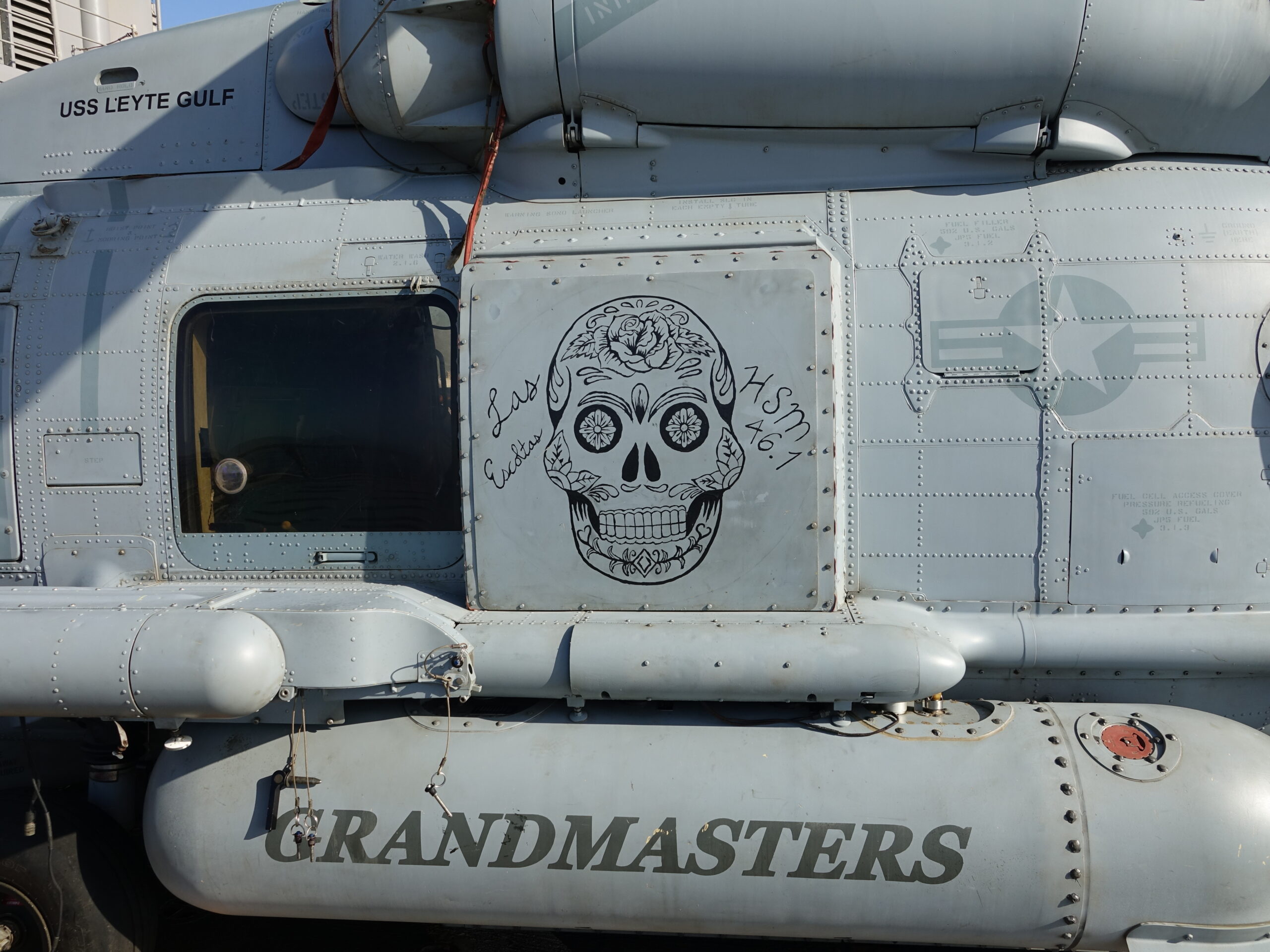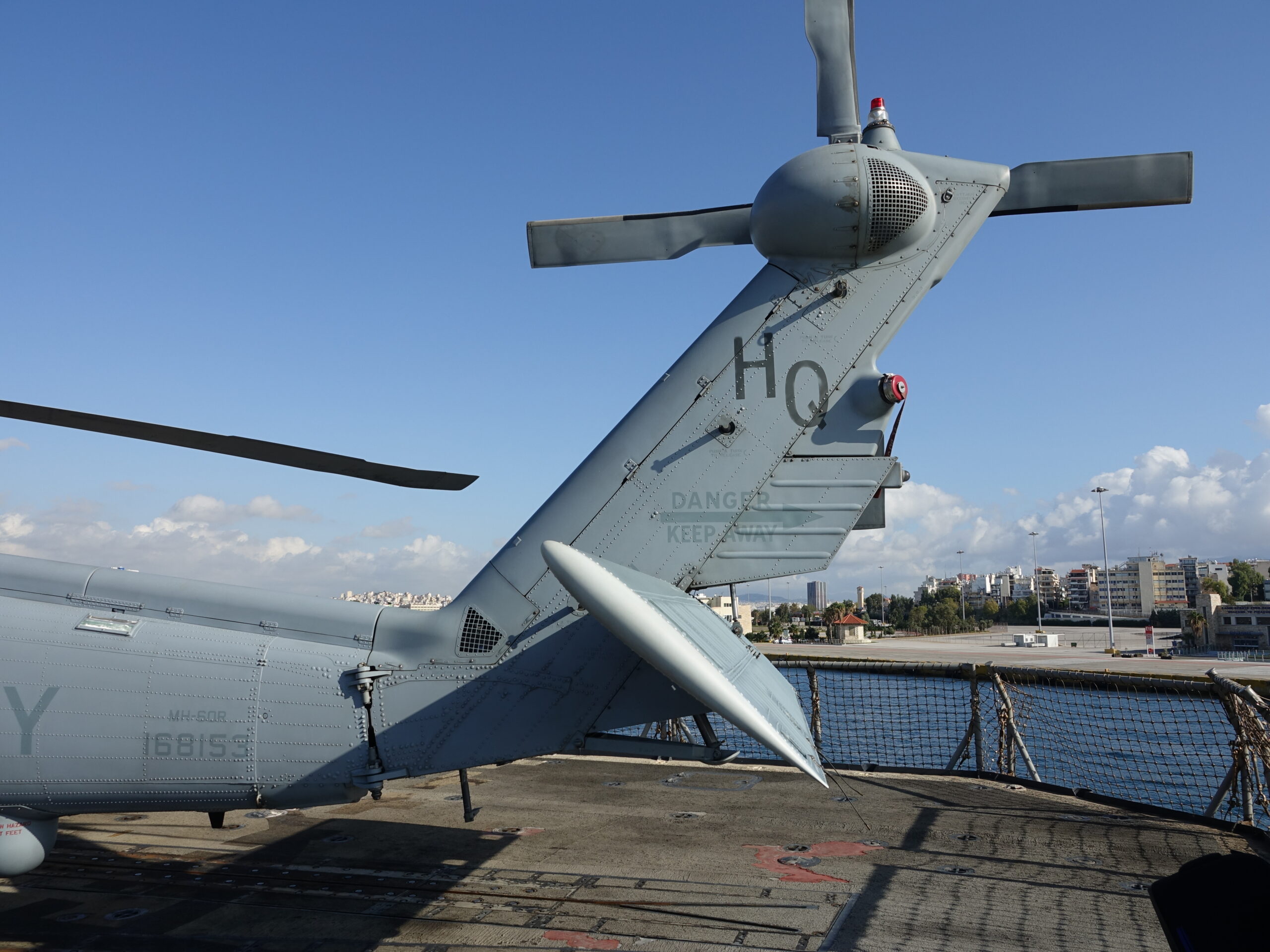 Στο παραπάνω όμως αφιέρωμα, είχαμε αποφύγει να μοιραστούμε μαζί σας ένα μικρό δεύτερο πακέτο φωτογραφιών, που αφορούσε τα ελικόπτερα ΜΗ-60R που φιλοξενούσε το πλοίο. Τα καταδρομικά κλάσης Ticonderoga μπορούν να φιλοξενήσουν δυο ελικόπτερα MH-60R, στριμωχτά μεν, αλλά μπορούν. Το Leyte Gulf όταν το επισκεφτήκαμε είχε πάνω του δυο ελικόπτερα, ένα εντός του υποστέγου, κι άλλο ένα εκτός, στο ελικοδρόμιο. Το φιλόξενο πλήρωμα του ελικοπτέρου μας επέτρεψε να φωτογραφίσουμε ότι θέλαμε (από το ελικόπτερο), κάτι το οποίο δεν έγινε για παράδειγμα στους χώρους του καταδρομικού.