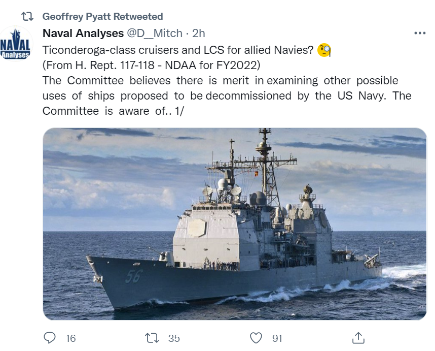 The Committee believes there is merit in examining other possible uses of ships proposed to be decommissioned by the US Navy. The Committee is aware of.. 1/ pic.twitter.com/ZEsdkofV1I— Naval Analyses (@D__Mitch) September 13, 2021
