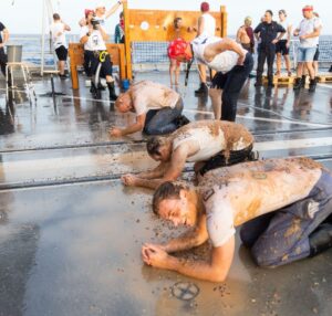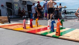 Στις παρακάτω φωτό έχουμε μια άλλη εκδοχή ψυχαγωγίας, με το σκάφος να έχει πιάσει Σιγκαπούρη αλλά το πλήρωμα δεν μπορούσε να βγει στην στεριά λόγω καραντίνας για τον κορωνοιό. Οπότε οργανώθηκαν διάφορα παιχνίδια πάνω στο πλοίο.