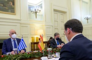 Ο υπουργός Εξωτερικών σημείωσε ακόμα ότι «η Ελλάδα προσβλέπει στην ενίσχυση της συνεργασίας της πολυμερώς και διμερώς και στο πλαίσιο της ευρωπαϊκής αλληλεγγύης και σε όλα τα θέματα που απασχολούν και τις δύο χώρες, και εμείς έχουμε υποχρέωση να σταθούμε δίπλα στην Ισπανία σε όποιες προκλήσεις αντιμετωπίζει». Και πρόσθεσε ότι «η ευρωπαϊκή αλληλεγγύη δεν είναι α λα καρτ, ο ένας πρέπει να είναι δίπλα στον άλλο».