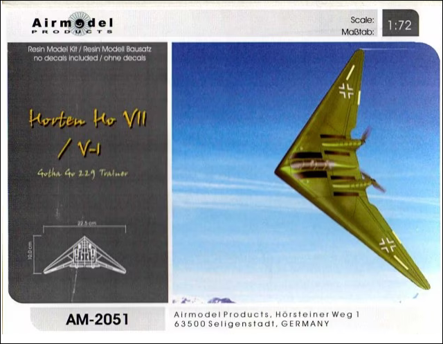 - Airmodel (Γερμανία): δεκαετία 2000, κιτ ρητίνης Νο. AM-2051, Horten Ho VII V-1