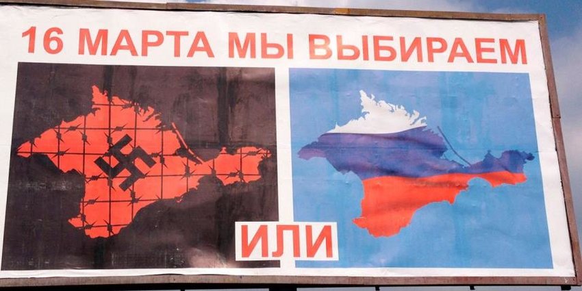 Το επόμενο ρωσικό παράδειγμα είναι εκείνο του δημοψηφίσματος στην Κριμαία το Μάρτιο του 2014, μετά την κατάληψη της από τη Ρωσία. Και εκεί είχαμε έγκριση με 97% της ένταξης της περιοχής στη Ρωσία, με έντονη βέβαια παρουσία στρατευμάτων, χωρίς αντιπολίτευση, χωρίς δημόσιο διάλογο. Διεθνής αναγνώριση δεν υπήρξε, αλλά ο Πούτιν εξέδωσε σχετικό διάταγμα ένταξης της περιοχής στην Ρωσία.