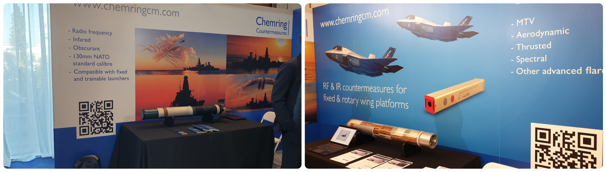 H επίσης αγγλική Chemring έχοντας μεγάλη εμπειρία στον χώρο του ηλεκτρονικού πολέμου, παρουσίασε decoys των 130 χιλ. τα οποία δύνανται να εκτοξευτούν από κάθε τυποποιημένο κατά ΝΑΤΟ αντίστοιχο εκτοξευτή, εγκατεστημένο σε πλοίο, όπως και αναλώσιμα αντίμετρα που προορίζονται για αεροσκάφη και ελικόπτερα.