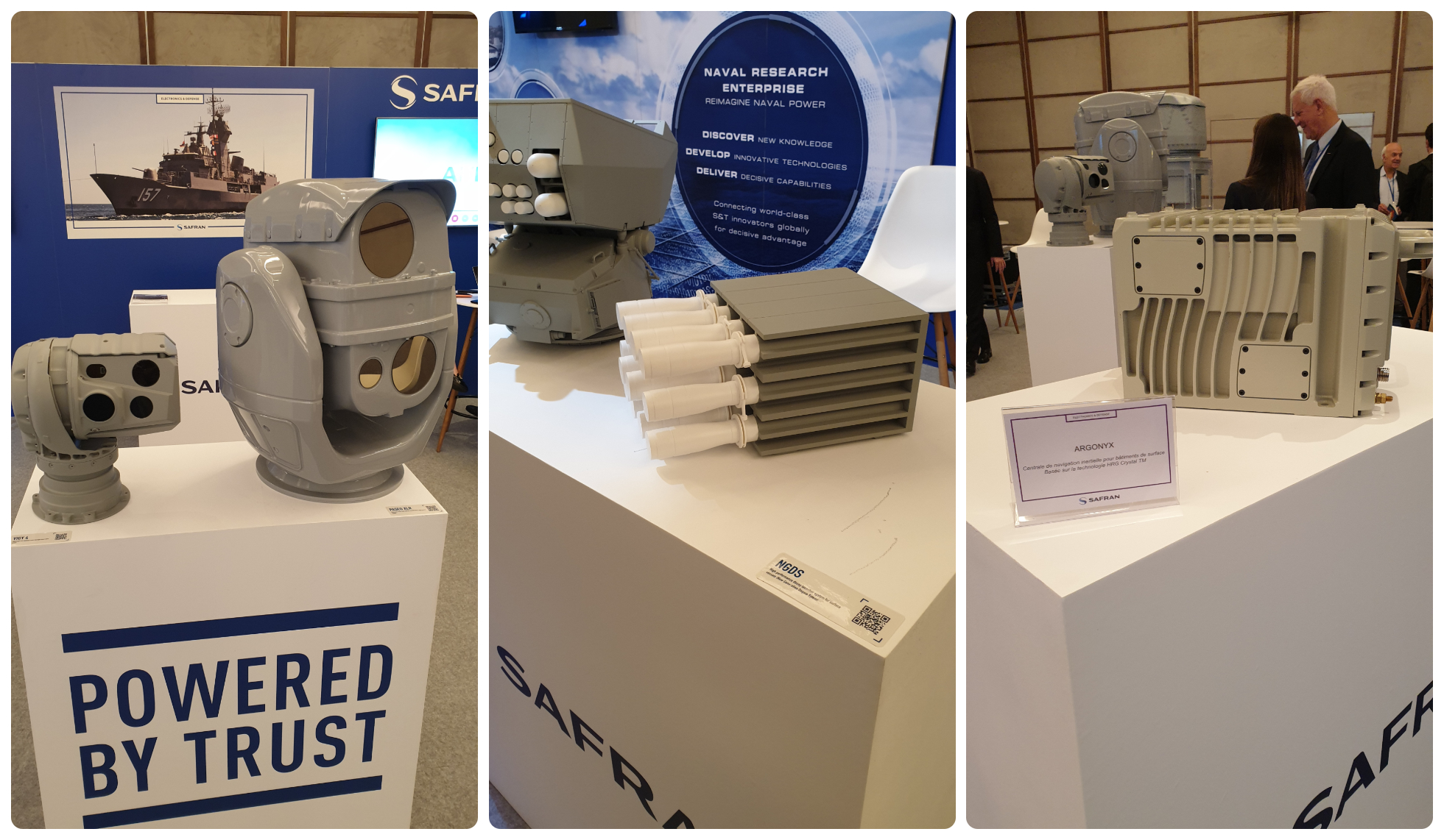 Στο περίπτερο της η Γαλλική εταιρεία Safran, παρουσίασε το αδρανειακό σύστημα πλοήγησης για σκάφη με την ονομασία ARGONYX, τον εκτοξευτή αναλώσιμων δολωμάτων νέας γενιάς NGDS καθώς και το ηλεκτροοπτικό σύστημα αναγνώρισης και ελέγχου πυρός, PASEO XLR, δύο από τα οποία θα φέρει η κάθε ελληνική φρεγάτα FDI, ενώ παρουσίασε και το επίσης ηλεκτροοπτικό σύστημα VIGY 4 που προορίζεται για σκάφη μικρότερου εκτοπίσματος.